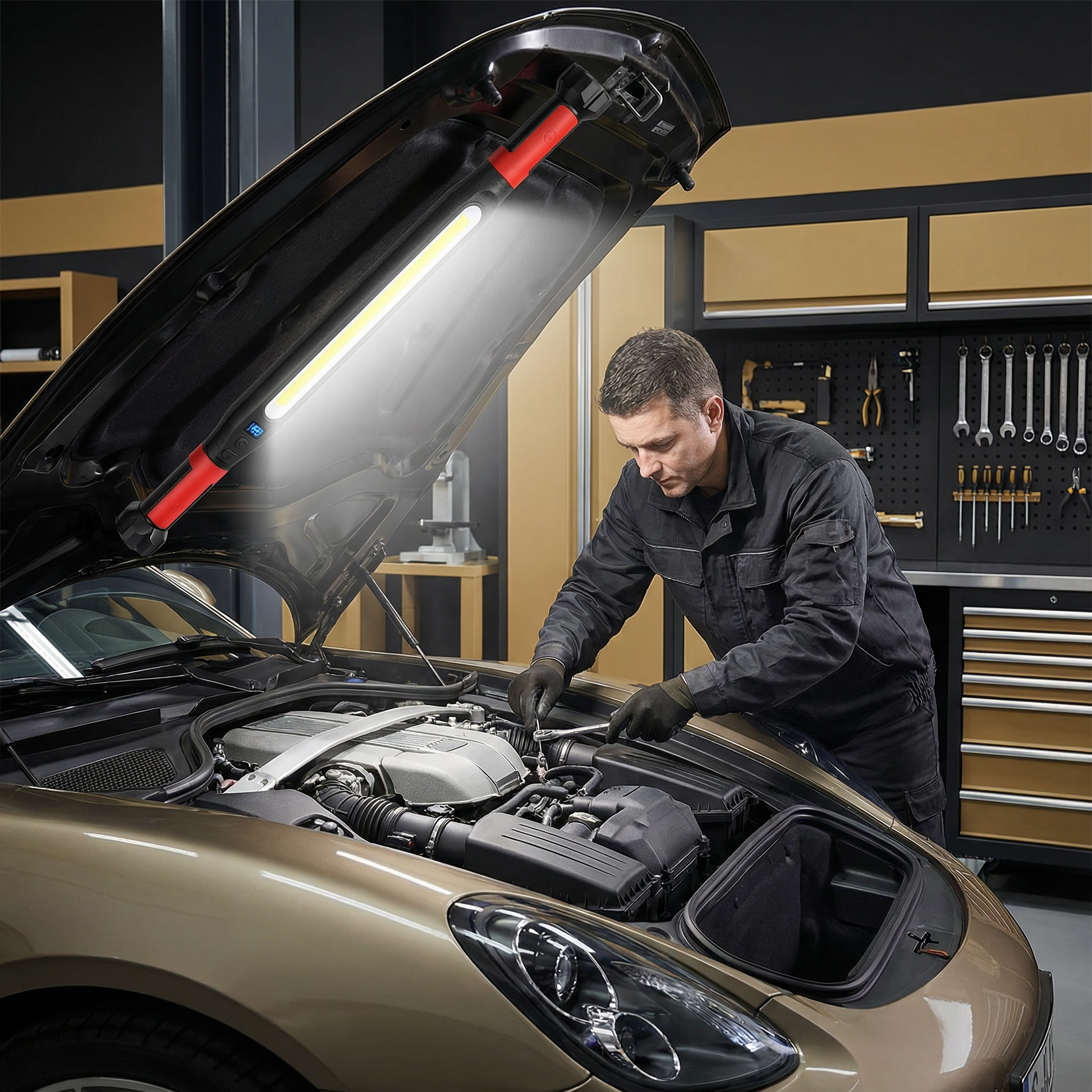 Dark corners, poor visibility, and improvised light sources are a thing of the past. This 3000-lumen rechargeable LED work light delivers powerful, even illumination exactly where you need it—whether in the workshop, while working on your car, around the house, or on the go. Rugged, flexible, and always ready to use.